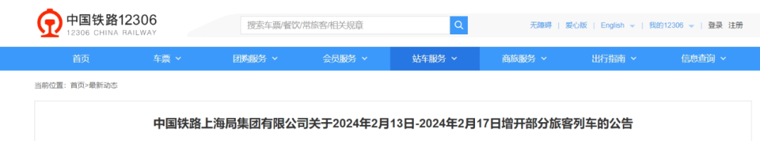 1.2024年2月16-17、19-20日增开阳新-上海虹桥D4880/77次,郑州东-上海虹桥G4362/59、G4740/37次。