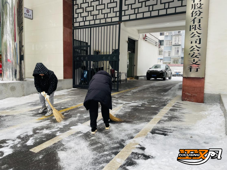 扫雪除冰志愿行,架起“连心桥”,扫通“平安路”。中行荆州分行联合东门社区第一时间发起“除雪破冰行动”,动员各支行快速投入到铲雪防冻、破冰清障工作中,组织支行负责人提前到达网点铲雪除冰,为前来网点办业务的客户和来往行人铺就一条“暖心路”。此外,针对积雪、结冰等可能引发的安全事故,切实抓好隐患排查和除险工作。