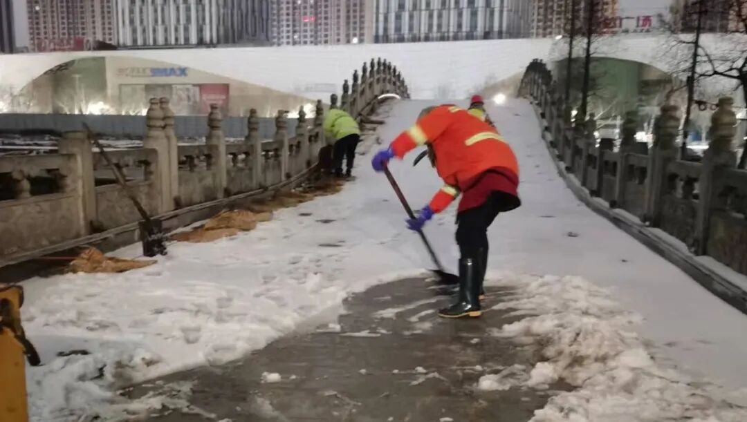 “速动”响应,连夜做好道路清雪除冰工作,积极采取除雪措施,全力以赴破冰除雪。