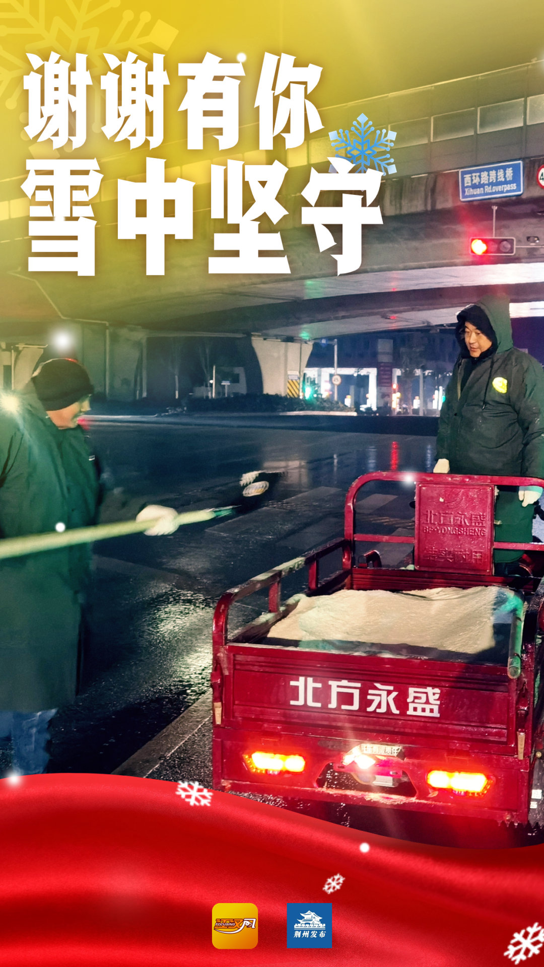 寒风冷冽,他们昼夜奋战不畏严寒,坚守在各自不同的岗位,全力以赴保障城市畅通。雪是冷,雪城是暖城。速度、力度、温度,这是荆州沸腾的“100℃”!雪天坚守感谢有你!谢谢你们,让荆州这座城更加温暖!