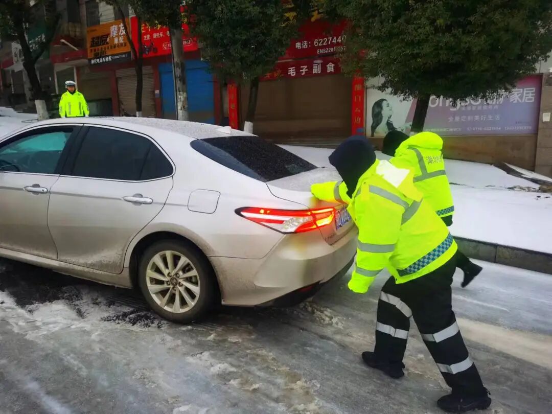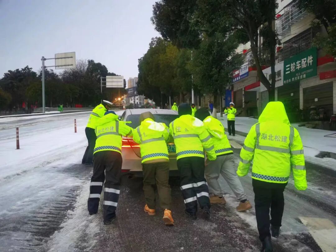 22日,荆州交警一大队全员上路,联合各单位铲雪除冰疏导保畅,不间断排查隐患亮灯巡逻、预警、提示,及时救助遇困车辆。