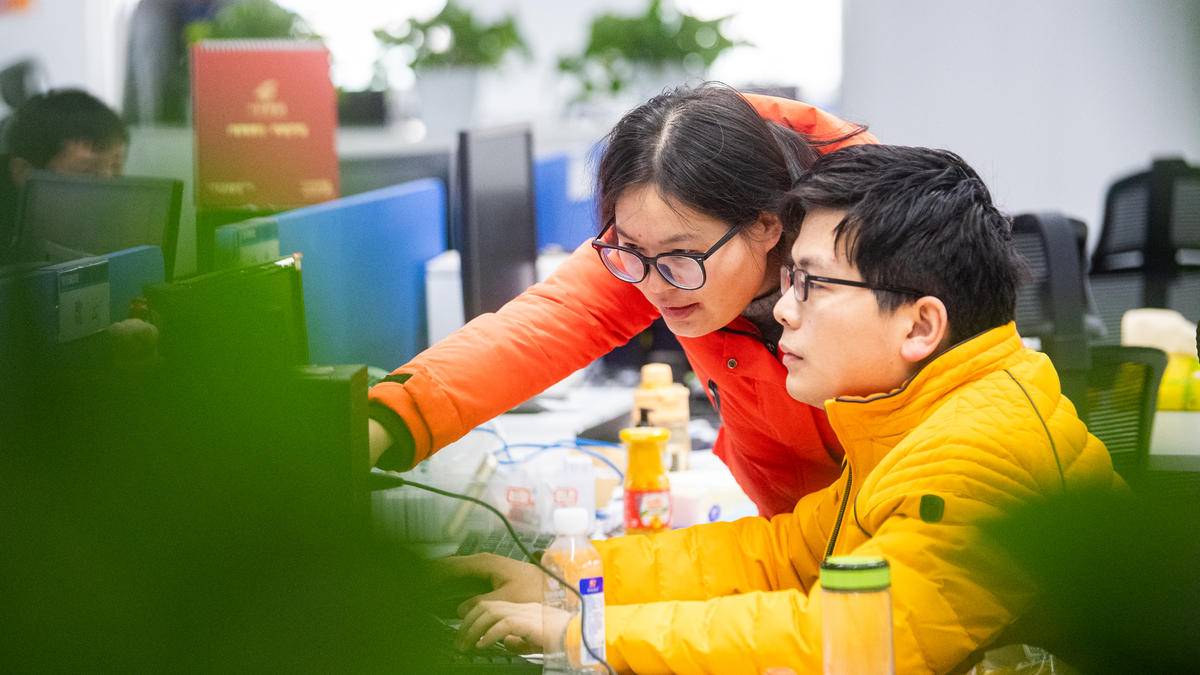 武汉天喻信息产业股份有限公司,工作人员正紧张忙碌地投入新产品研发。(湖北日报全媒记者 何宇欣 摄)