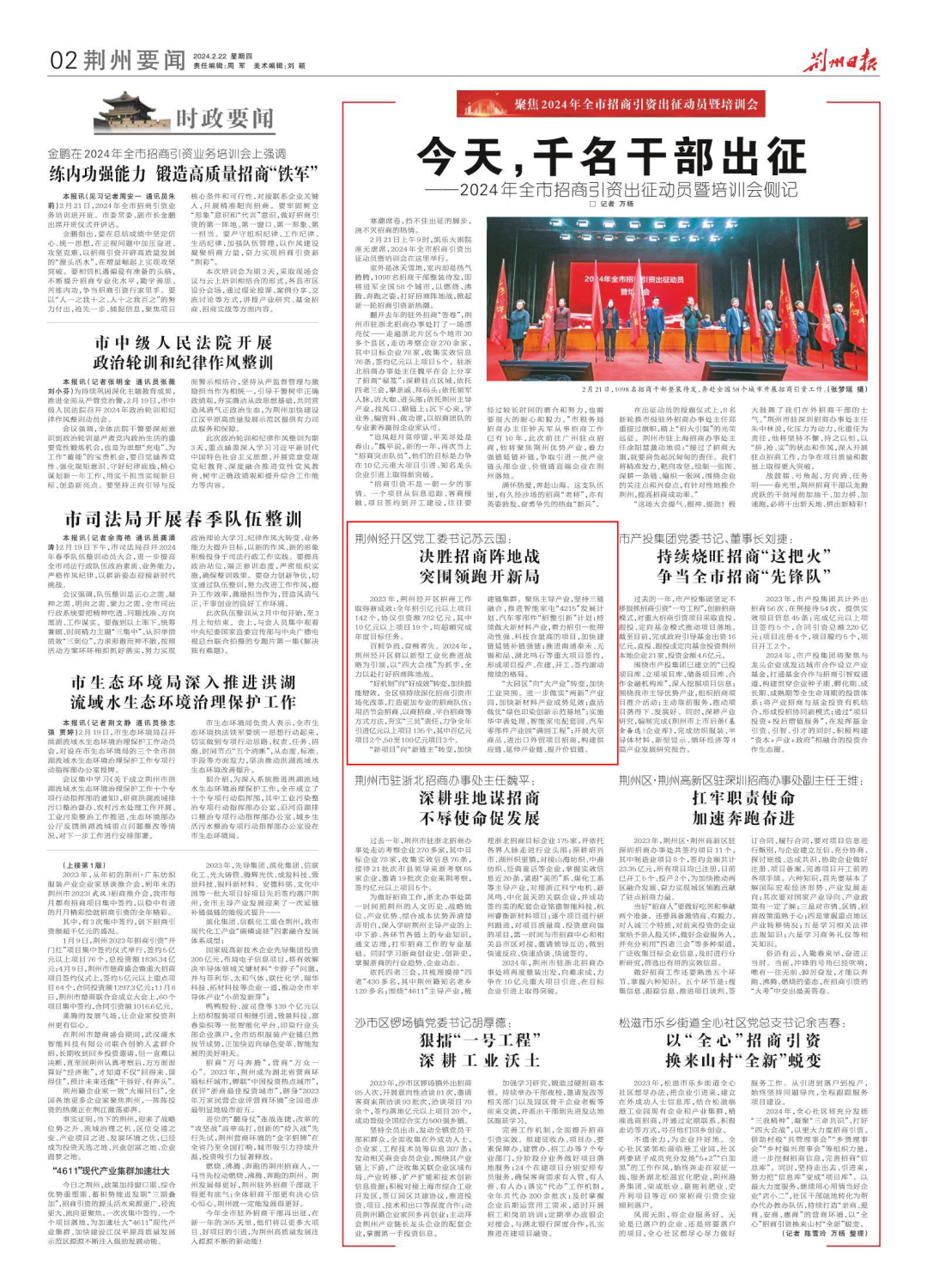 2023年,荆州经开区招商工作取得新成效:全年招引亿元以上项目142个,协议引资额782亿元,其中10亿元以上项目19个,均超额完成年度目标任务。