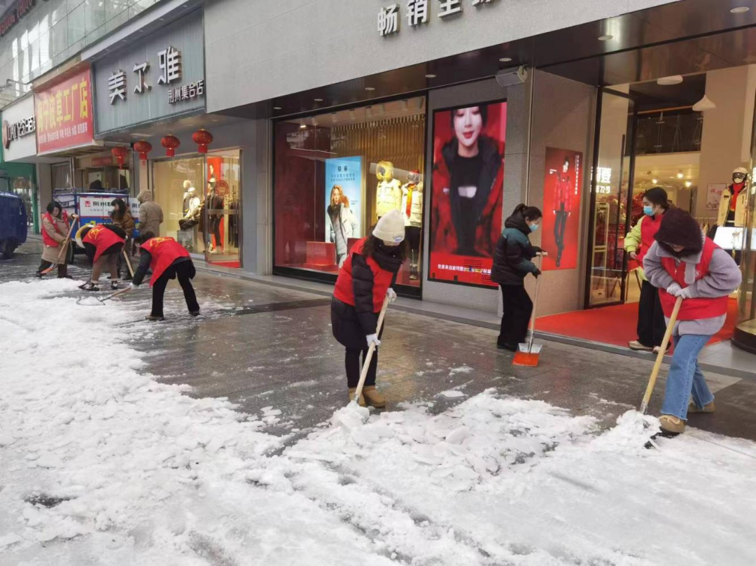 在城市主次干道、大街小巷,处处都有广大党员干部群众和志愿者铲冰除雪的身影,从白天到黑夜、从黑夜到白天,许多人不眠不休、顶风冒雪,众志成城、负重前行,全力以赴打好打赢保畅保供主动仗。市城管执法委巾帼志愿队主动下沉北京路网格为市民清出了一条“暖心路”。