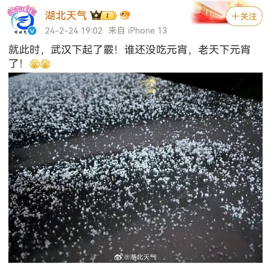 本周湖北寒潮来袭雨、雪、冻雨、冰粒、霰、冰雹、雨夹雪相继到来昨晚(24日)7时左右武汉下起了霰