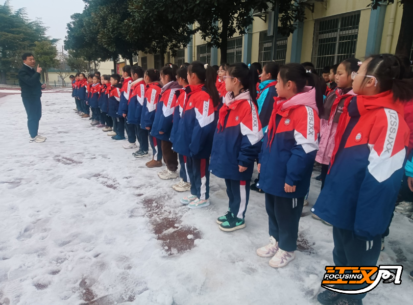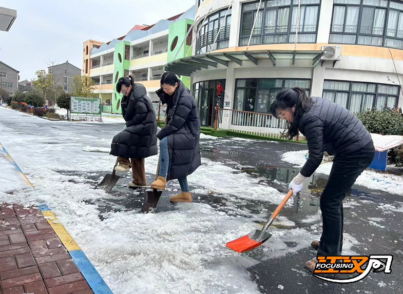 老师们不畏严寒,听从指挥,齐心协力,默契配合,全力清除校园内的积雪和坚冰,开辟出一条条安全畅通之路。忙碌的身影、一片热火朝天的景象,构成了雪地里亮眼的风景。