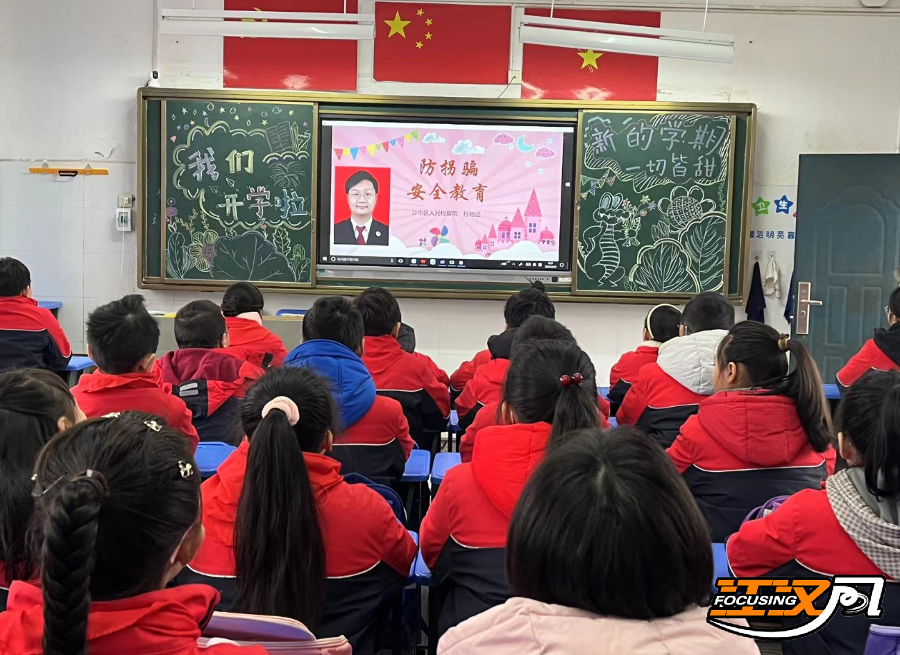 26日,沙市洪垸小学举行线上开学典礼,并邀请沙市区人民检察院工作人员为孩子们讲授开学第一课——《防拐骗安全教育》。(通讯员叶绿)