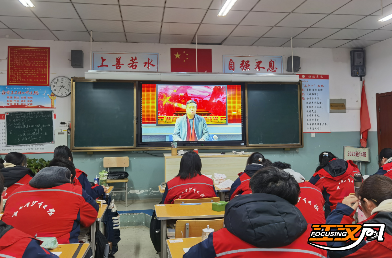 2月26日早晨7:00,沙市中学开学典礼如期在室内举行,全体同学在本班教室通过电视收看直播。