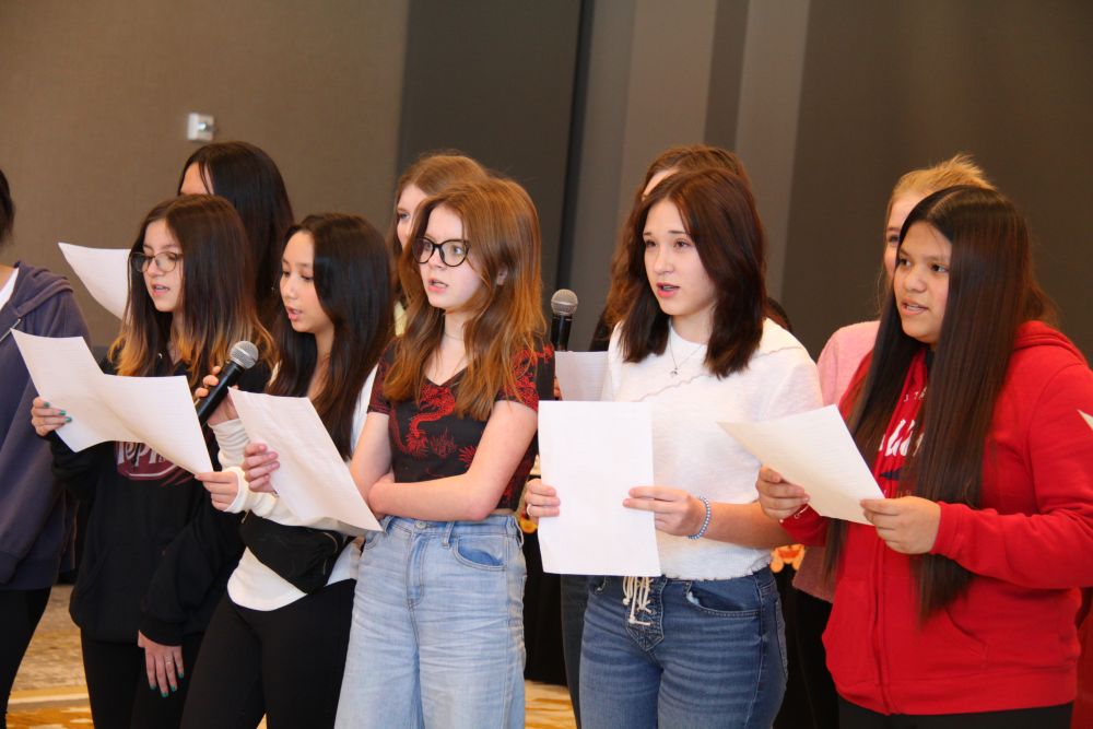 2月9日,在马斯卡廷,马斯卡廷中学学生在演唱中文歌曲。