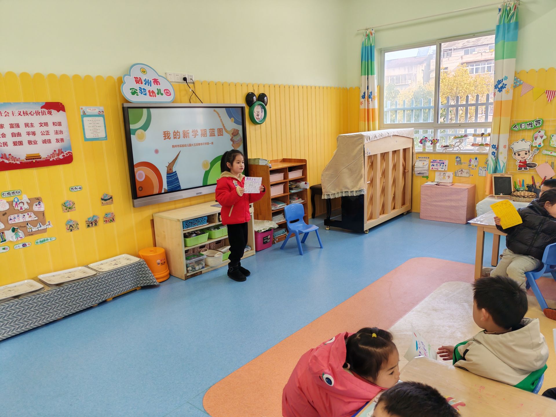荆州实验幼儿园大五班老师 鲁珊珊:我们开学第一课分有两个部分,有一个安全教育,第二部分内容,我们设计了新学期蓝图,培养他们有计划性地去做一些事情,分享一些假期的趣事,他们语言的表达能力也会有所提高。