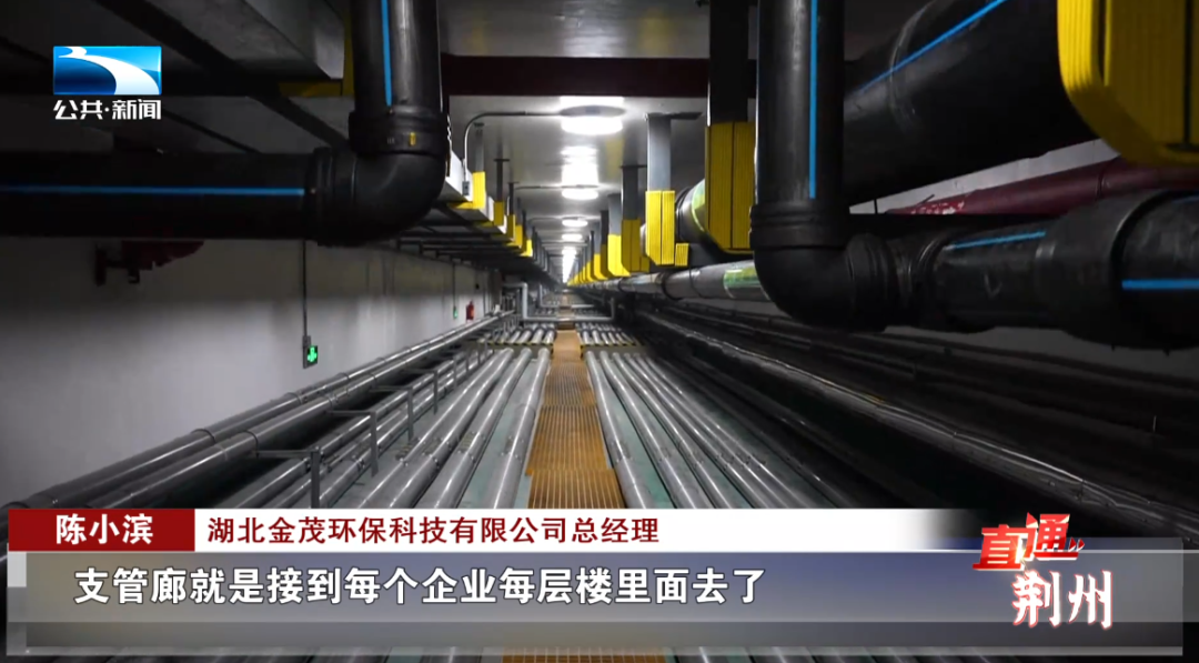 湖北金茂环保科技有限公司总经理 陈小滨:“我们统一建管廊,支管廊就是接到每个企业每层楼里面去了,我们园区总共工业废水分18类,我们就把管都预留好。”