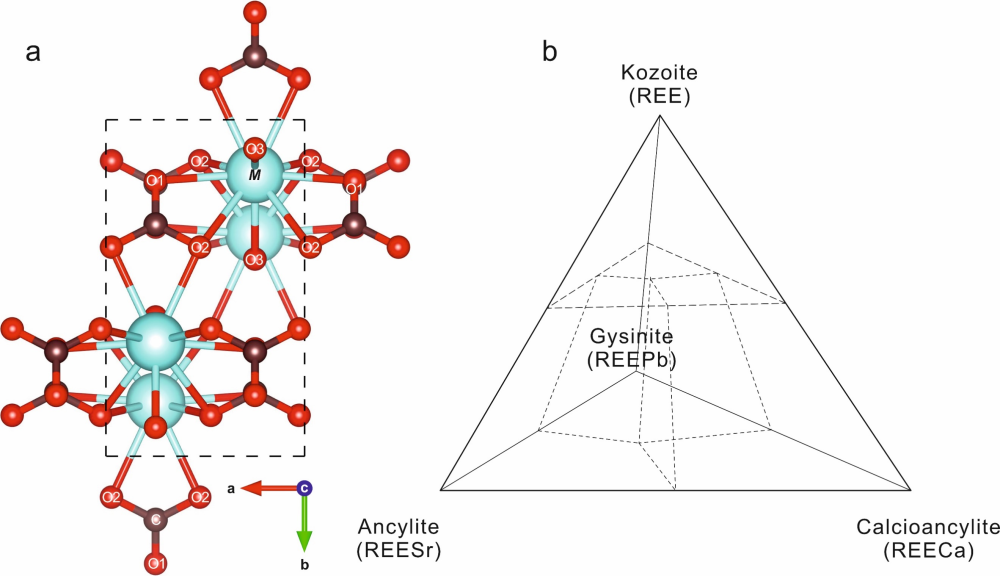 碳锶铈矿超族矿物晶体结构模型图与分类边界三元图。(受访者供图)