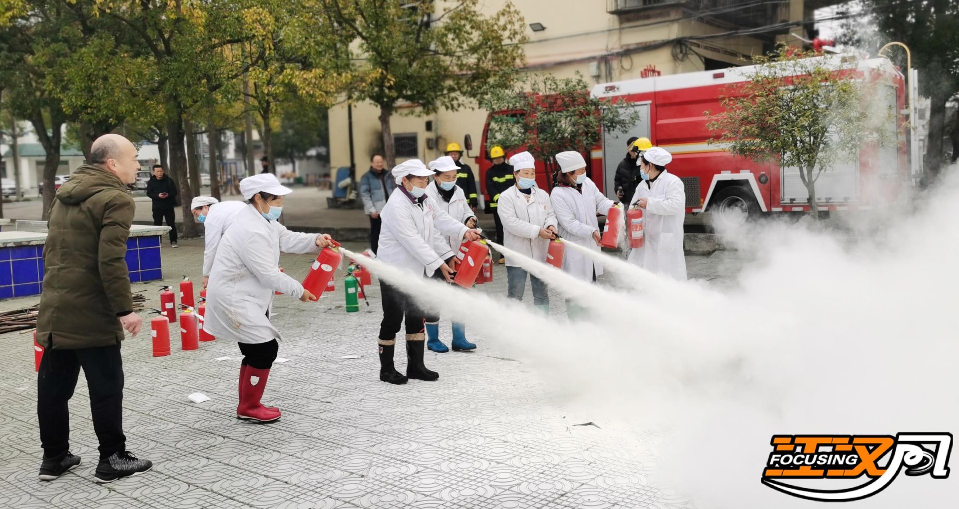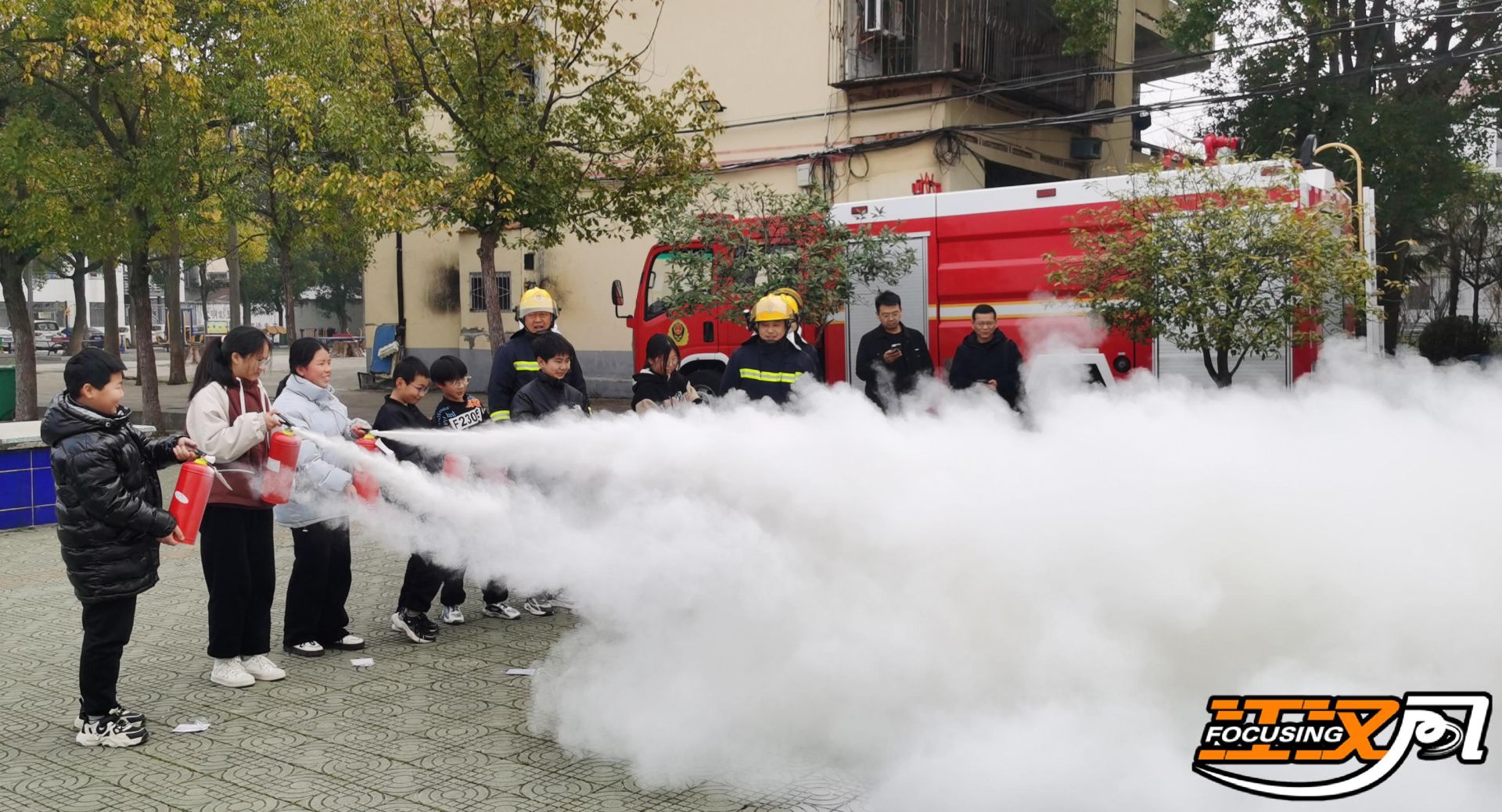 八岭山镇消防站队长谢初为师生讲解正确的逃生方法和火险自救基本常识,教授并示范灭火器的正确使用方法。