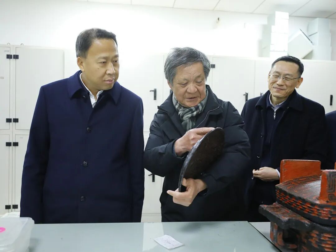 在木漆器修复室,刘雪荣与吴顺清团队成员交流交谈,了解到团队中有很多高学历人才,涵盖化学、生物、美术等多个学科,刘雪荣勉励大家:“追星就追‘大国工匠’这样的星,不管身处哪个岗位,都能通过精研技艺而出彩。”团队成员、博士赵阳连连点头表示,目前团队在饱水木漆器、竹木简牍、丝织品文物保护修复等方面的技术居全国乃至国际领先水平,将持续以吴顺清为榜样,刻苦钻研、开拓创新,走好技能成长、技能报国之路。