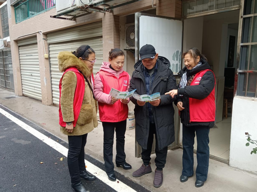 每日清晨,“彭国珍服务队”的队员们就穿梭在小区的各个角落,积极向居民宣传创文、反电诈等相关信息。