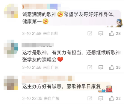 此前报道,3月7日,@CMCLive华人文化演艺 发布《张学友 60+巡回演唱会-上海站》三场演出取消公告,称张学友先生因身体不适,就诊后应医嘱需要进行静养。