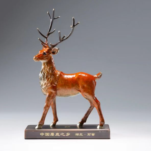 在中国麋鹿之乡石首境内,生存着世界上最大的野生麋鹿种群,我们依故宫珍品清代画家郎世宁《秋林群鹿图》而设计,采用国家非遗百年传统工艺精制,造型精妙,栩栩如生。鹿是长寿的仙兽,又与“禄”谐音,有高官厚禄之意,寓意学业、事业一帆风顺,前途高远,家庭幸福。