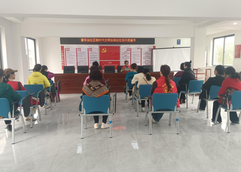 江汉风报道:为增强居民群众的环保意识,倡导绿色、低碳、环保的生活方式。3月12日,沙市区胜利街道章华台社区新时代文明实践站开展垃圾分类宣传活动。