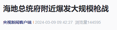 据央视援引海地媒体报道,当地时间8日,位于海地首都太子港的总统府附近爆发大规模枪战。