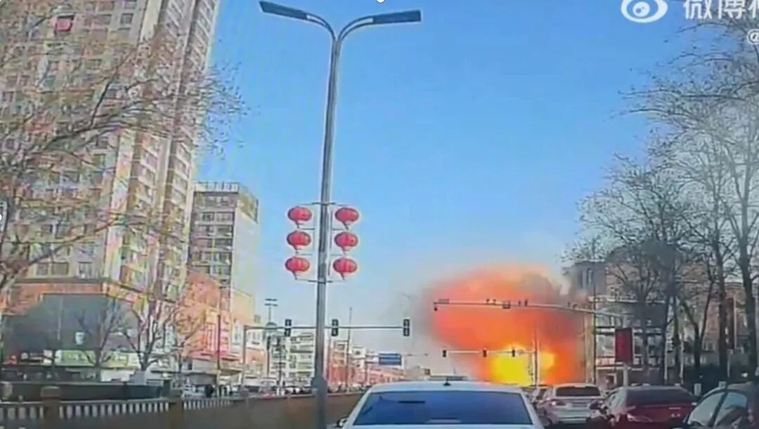 网传视频显示,附近建筑玻璃被震碎,路面多辆汽车受损。疑似燃气爆炸。