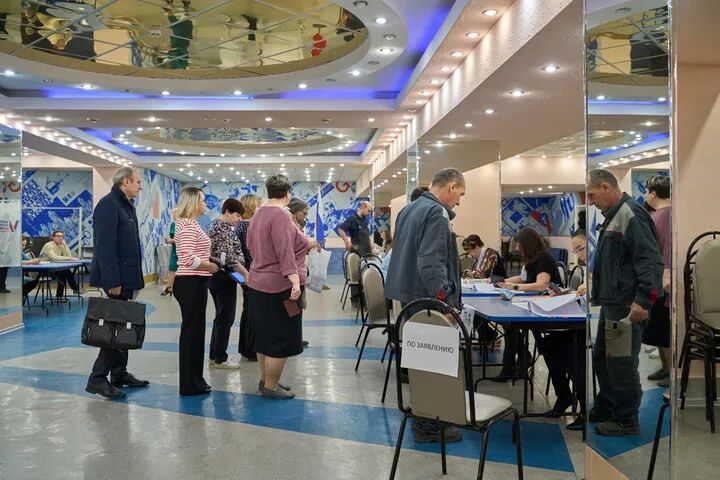 3月15日,当地居民在俄罗斯符拉迪沃斯托克排队登记参加总统选举投票。新华社发(郭飞洲摄)