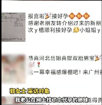 湖南的郭女士也反映,在自己毫不知情的情况下,丈夫找人代孕了孩子,家庭走向决裂。