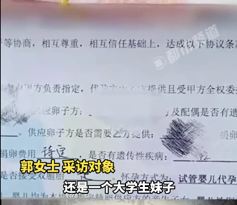 据郭女士描述,这个孩子是老公在网上找的“卵妹”代孕而来,“还是一个大学生”。