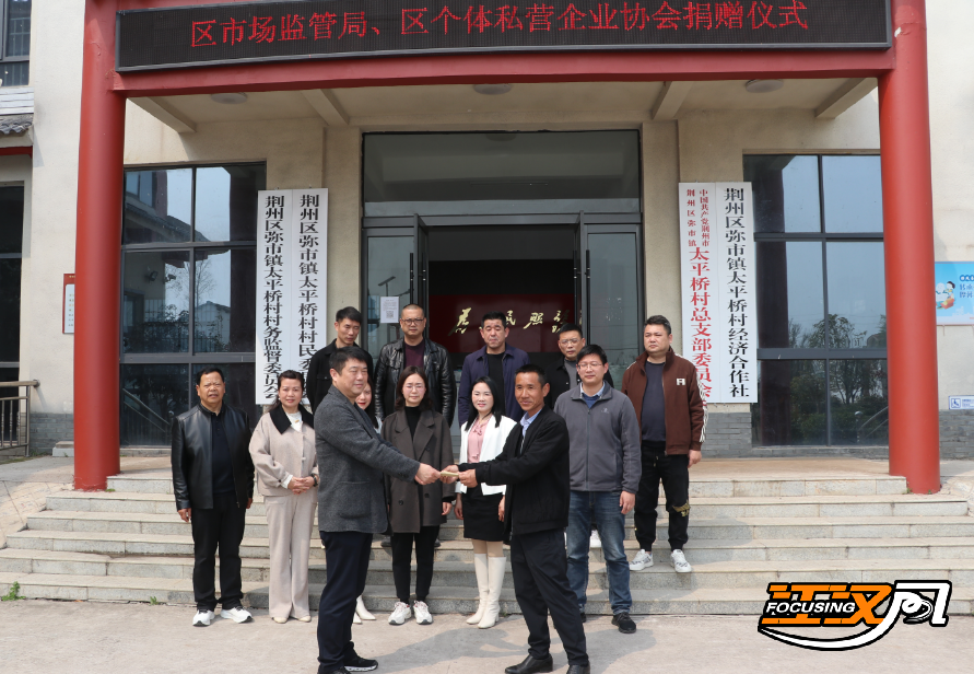 江汉风报道:3月14日,荆州区市场监管局、区个体私营企业协会到荆州区弥市镇太平桥村村委,将爱心捐款交到了村干部的手中。