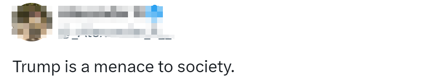 近来,美国民主党与共和党之间的政治斗争愈发激烈,美国舆论两极分化。特朗普称“若自己不当选美国将发生屠杀”的言论再次在美国网络上引发争论。在社交媒体X上,有人批评称:“特朗普对社会是个威胁。”
