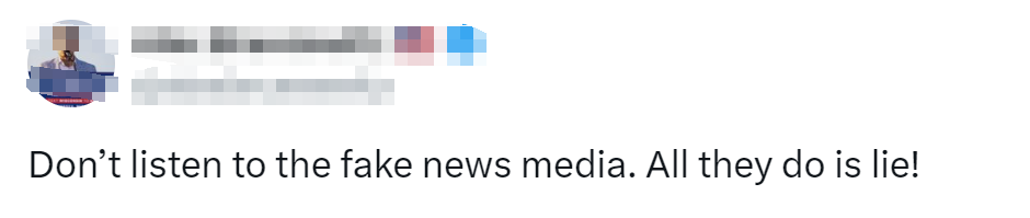 针对报道了特朗普这一言论的美国媒体,有网民留言:“不要听那些虚假新闻媒体说的,他们说的都是谎言。”
