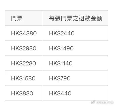 通过官方票务平台购买2024年2月4日比赛日门票的公众,将于2024年3月18日收到由票务平台发出的邮件通知至购票时所用的邮件地址。如未有收到邮件,请检查邮箱内的垃圾邮件。公众须于香港时间2024 年 4 月 12 日 23:59之前回复并接受 50% 门票退款的条款及细则。退款将在截止日期(2024 年 4 月 12 日)后的30天内进行处理。