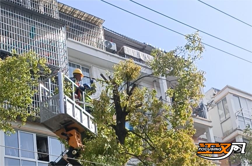 为了解决这些问题,沙市区城管执法局安排工作人员与社区人员商议,共同制定了修剪方案。3月20日,该局调派云梯车、绿化垃圾清运车、修剪养护工具等专业设备,组织8名经验丰富的园林工人,对两小区近50多棵树木开展修枝剪叶作业。