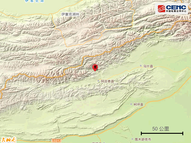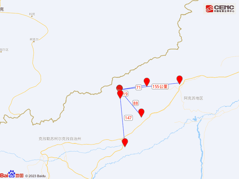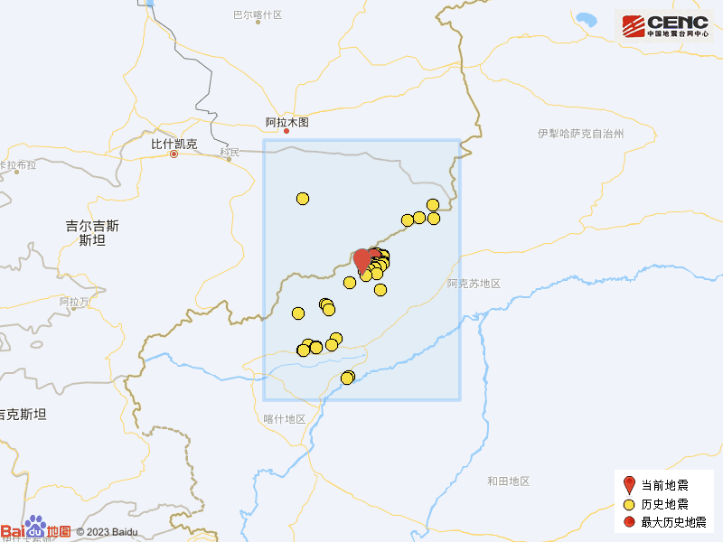 此前,据中国地震台网正式测定,3月23日5时3分在新疆克孜勒苏州阿合奇县发生4.1级地震,震源深度10公里,震中位于北纬41.16度,东经78.61度。