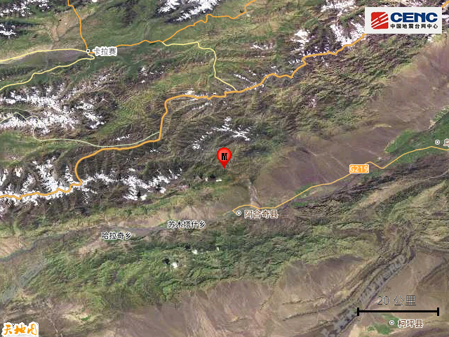 附近村镇:本次地震周边5公里内的村庄有喀拉塔拉,20公里内的乡镇有阿合奇镇。