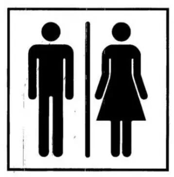 在汉口一商城2楼洗手间外墙上,没有汉字标识,只有由几何图形组成的人形标志。