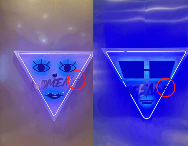熊女士今年27岁,是土生土长的武汉人,经常逛街的她对武汉各大商场都很熟悉。尽管如此,她有一次去武汉一大型购物中心时,还是被其卫生间的标识弄昏了头。“女性卫生间标识形似一张女人的脸,睫毛、眼睛、嘴巴具备,鼻子处是英文‘WOMEN(女)’,男性卫生间标识看起来像一张戴着墨镜的男人的脸,鼻子处是‘MEN(男)’。”