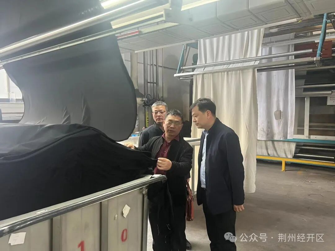 陈明宇一行先后考察某印染企业、某大型纺织企业,深入生产车间察看生产情况,了解企业长远发展规划,并与企业负责人就项目合作事宜进行深入交流。