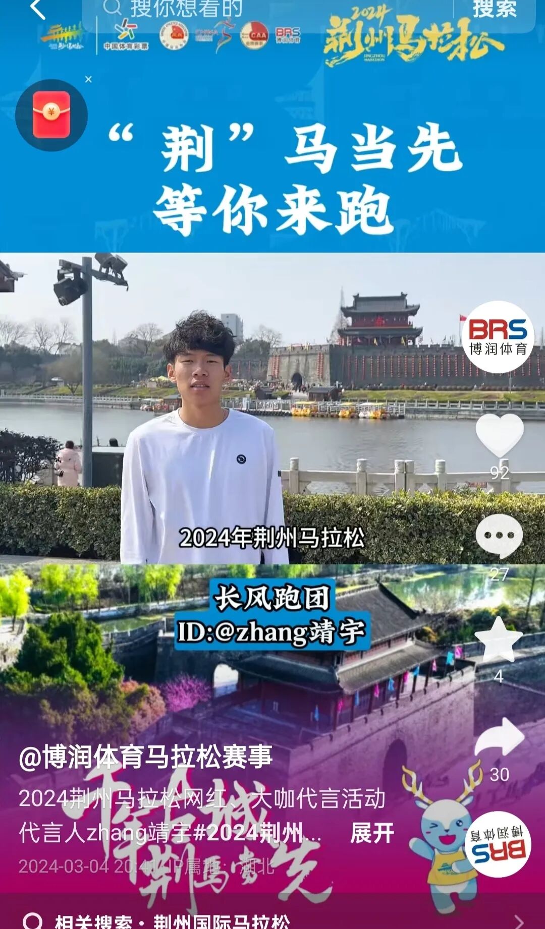 拿起手机拍摄短视频上传,为荆州马拉松呐喊助威,用热情点燃荆州的运动之光,让更多人感受到运动的魅力与力量。