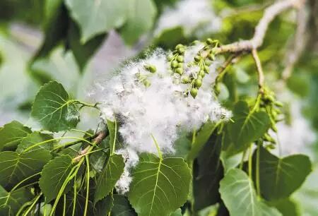 杨树的果成熟时,果实开裂成絮到处飞扬形成杨絮。