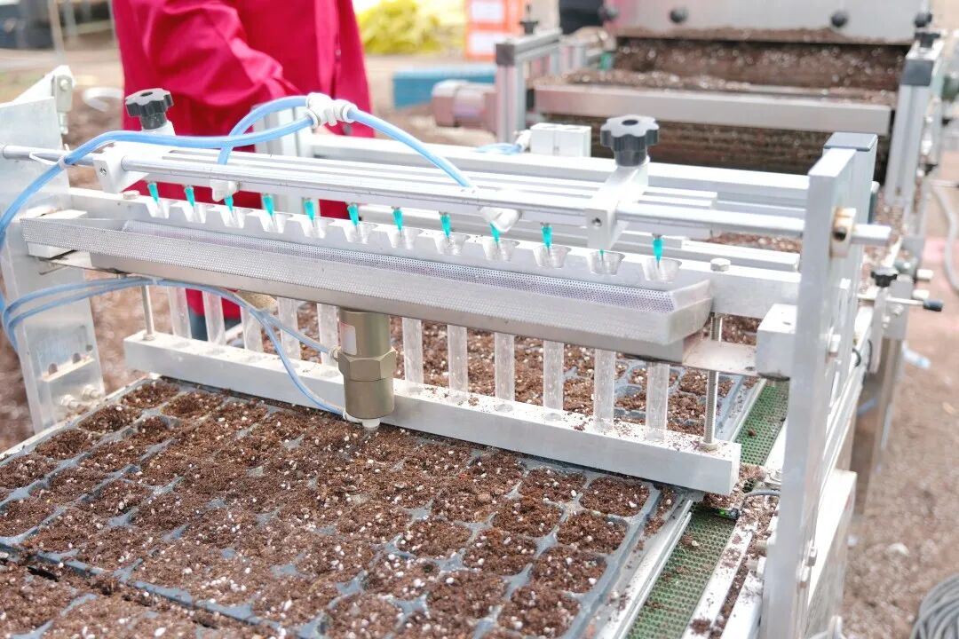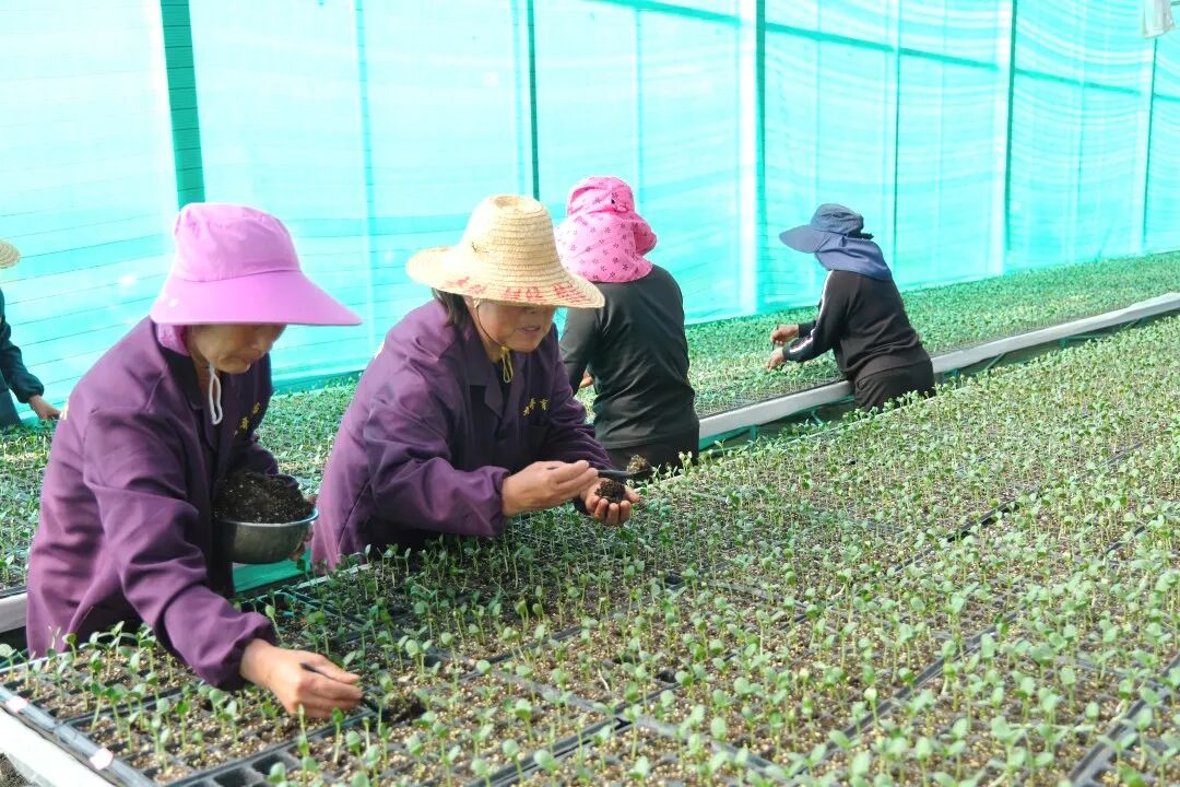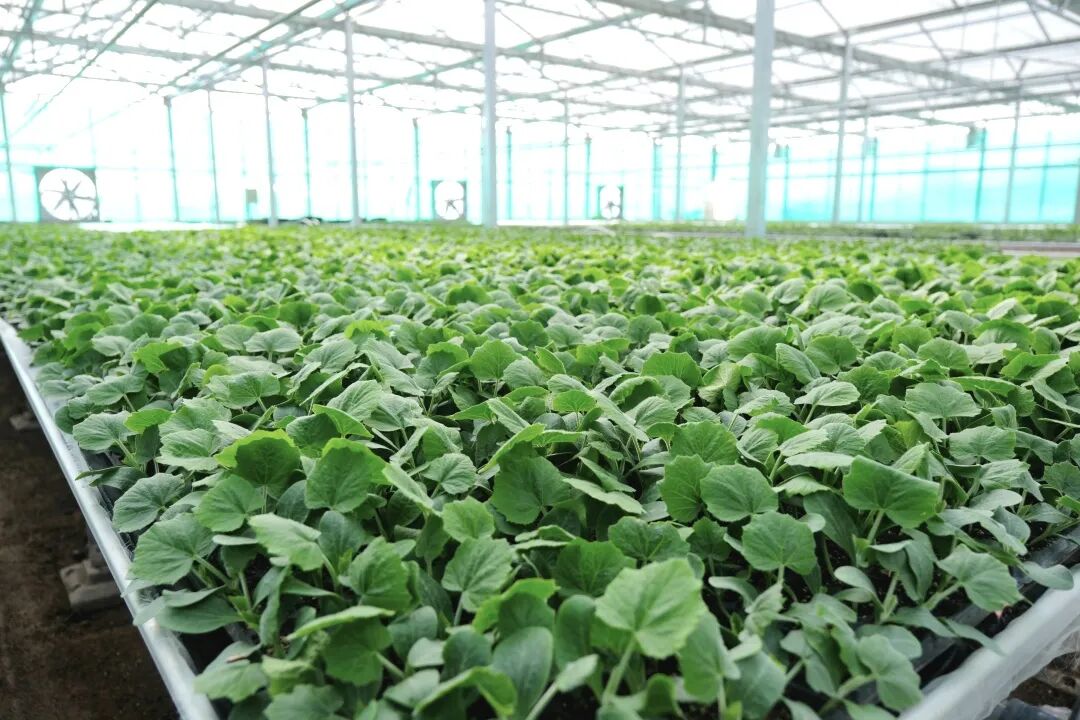 放眼望去,一株株西瓜、玉米、白菜苗从秧盘里破土而出,春意盎然,满眼新绿。