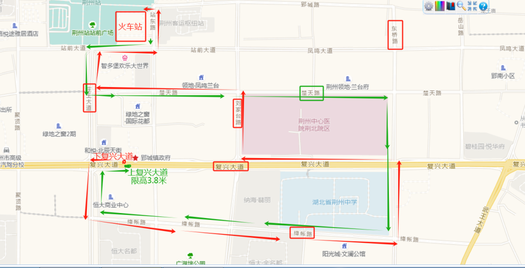 20路:火车站—枣林,途经路段:荆州大道—207国道—雨台大道—武王大道—孙叔敖路—207国道;