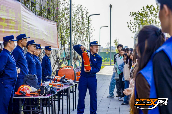 灭火器是常用的消防器材,消防救援人员对常用灭火器使用方法进行详细分步骤讲解,学生们跃跃欲试,积极参与实操使用。“我们精心组织大家通过室内宣传教育培训,同上《我的大学 我的消防安全课》;室外学习消防器材,近距离接触消防,亲身感受体验,提升了消防安全意识和火灾逃生能力,整个过程收获满满。”“火焰蓝”大学生志愿者服务队的一名同学满心欢喜的说道。活动最后在消防救援人员和师生代表以及“火焰蓝”大学生志愿者服务队的大合影中圆满落幕。