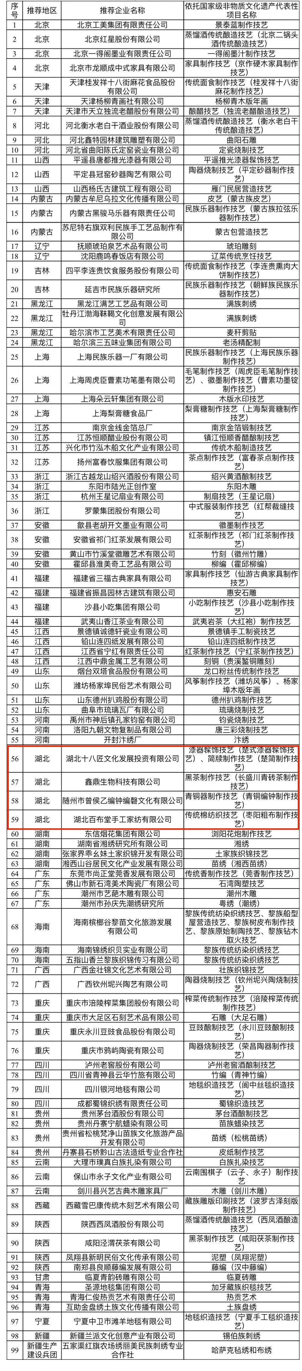 近日,文化和旅游部认定99家企业和单位,为2023—2025年国家级非物质文化遗产生产性保护示范基地。湖北有4家入选。
