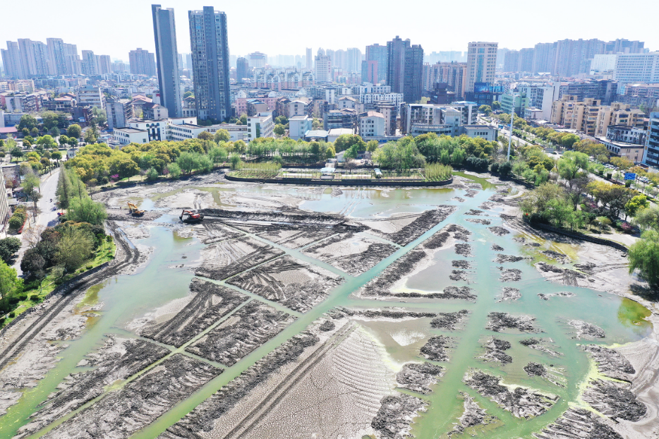 江汉风报道:截至4月1日,沙市张李家渊水质生态修复全面开始了,现场多台挖掘机和推土机正在紧张作业,重心是把淤泥推到集中地固化,堆放凉干。