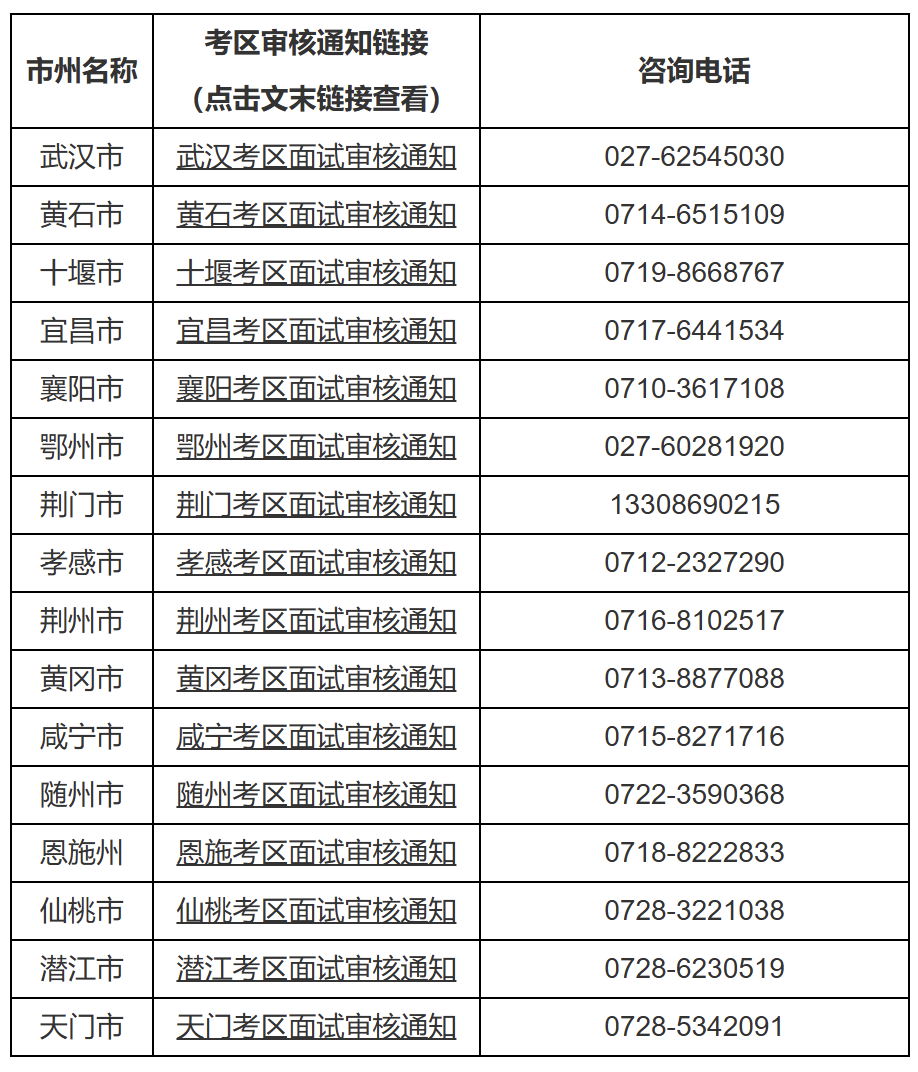 湖北省中小学教师资格考试(面试)报名的资格审核由各考区根据工作要求并结合考区的实际情况进行安排。报名提交后,须密切关注自己的审核状态,若“待审核”状态超过24小时,应及时自查是否未按考区审核通知的要求提交相关材料或未去现场审核。如有疑问,请拨打考区审核通知中公布的电话咨询。