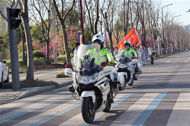 当日上午7时,五大队民辅警提前到岗到位,围绕武王大道、凤凰大桥、园博路等重点路段,部署警力强化管控。紧盯武王大道与凤凰大桥等关键路口,通过调节信号灯、值守指挥等方式,护航师生安全通行。同时,大队增派骑行警力,以全程紧跟队伍、不断细心叮嘱的方式,密切关注周边道路通行情况,指挥过往车辆慢行避让,全力保障队伍行进安全有序。在远足途中,民辅警与学子们交流互动,积极宣传交通安全知识,学生们轻盈走动,荧光绿缓缓移动,交相辉映,充满活力与朝气。