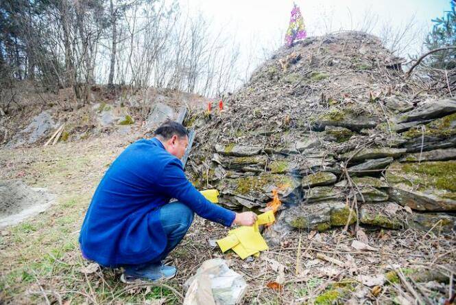 没有墓碑的墓地扫墓