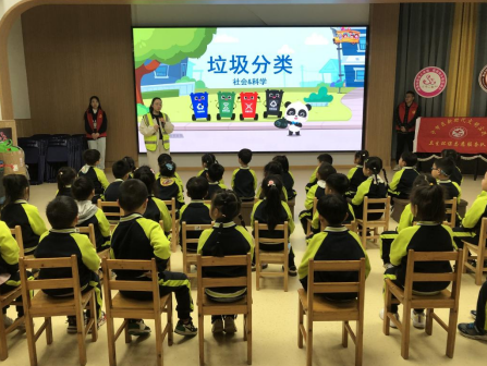 上午10点,课堂上以“小手拉大手,垃圾分类齐步走”为主题,孩子们在志愿者的引领下,开始了充满趣味的垃圾分类之旅。活动特邀讲师以生动有趣的授课来展示垃圾乱扔的危害,吸引孩子们聚精会神地看着,不时发出惊叹和好奇的声音。讲师还与孩子们通过互动问答,以及投放游戏,加深他们对各类垃圾的认知。在欢声笑语中,孩子们积极举手,踊跃参与,还收到志愿者发放的玩具奖品。