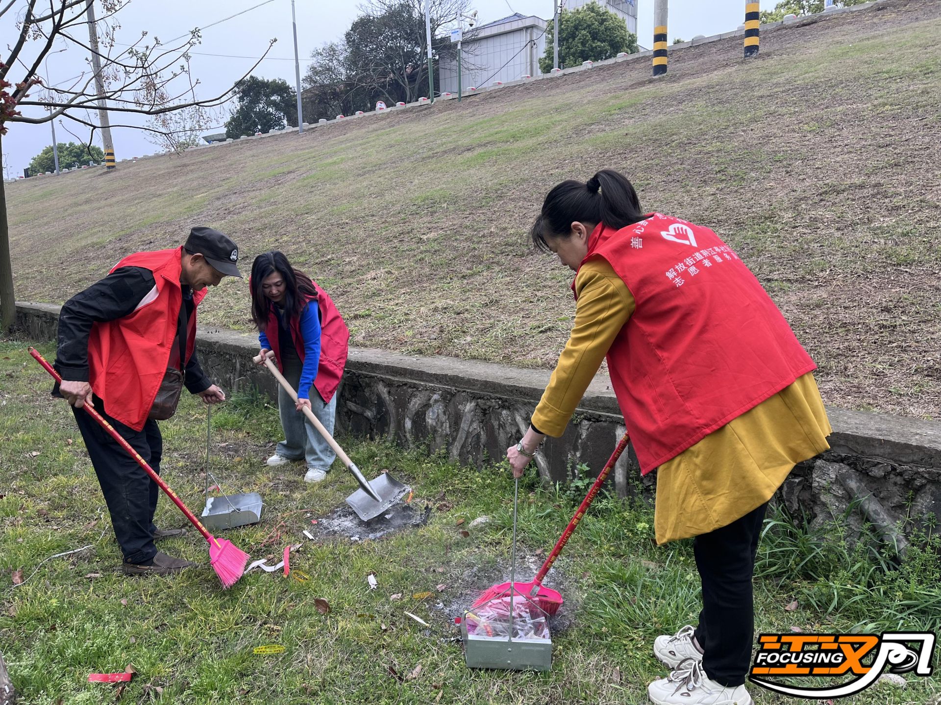 此外,志愿者在边巡逻边宣传的同时还拿来扫把撮箕将地上的余火余灰进行跟踪式的扑灭和清理。通过本次活动,进一步提高了居民群众文明祭祀、安全祭祀的意识,降低了祭祀活动引起的火灾风险,对荆江大堤和沿江一带的园林绿化起到了一定的保护作用,同时也为群众营造了文明安全的祭祀氛围。