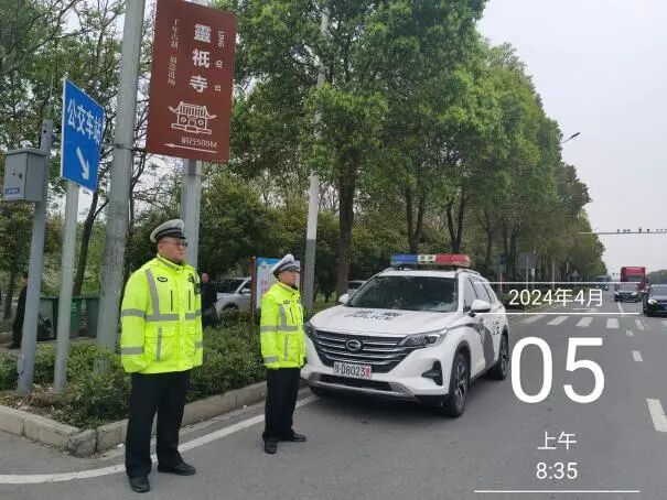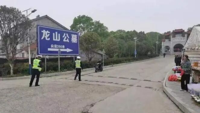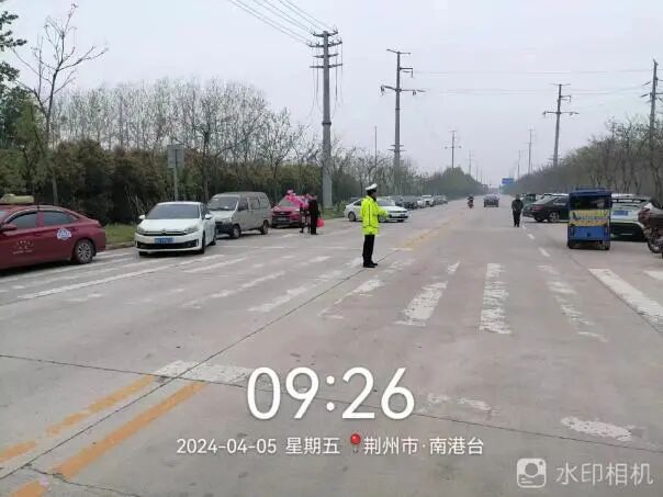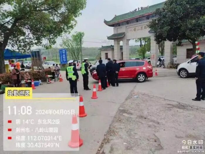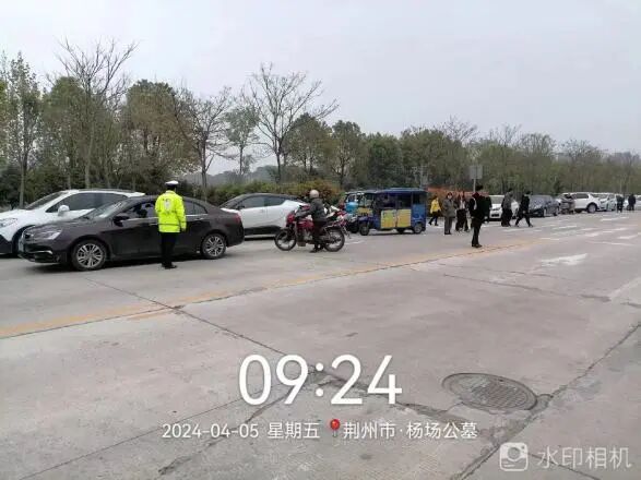 4月5日,为保障祭扫车辆人员的畅通有序,荆州交警在各墓区门前指挥疏导,及时疏导车流通行,为群众清明出行高峰服务保畅。